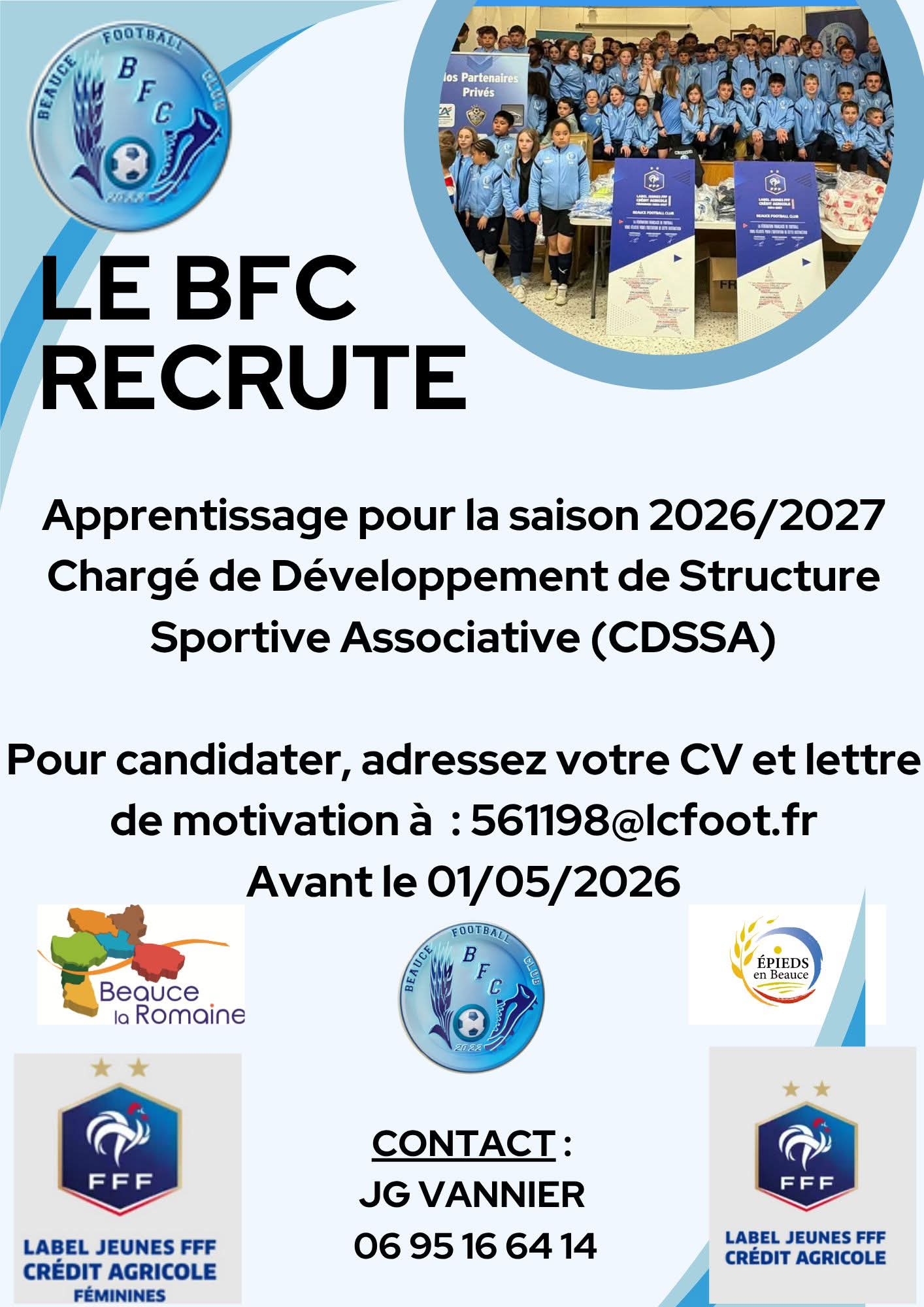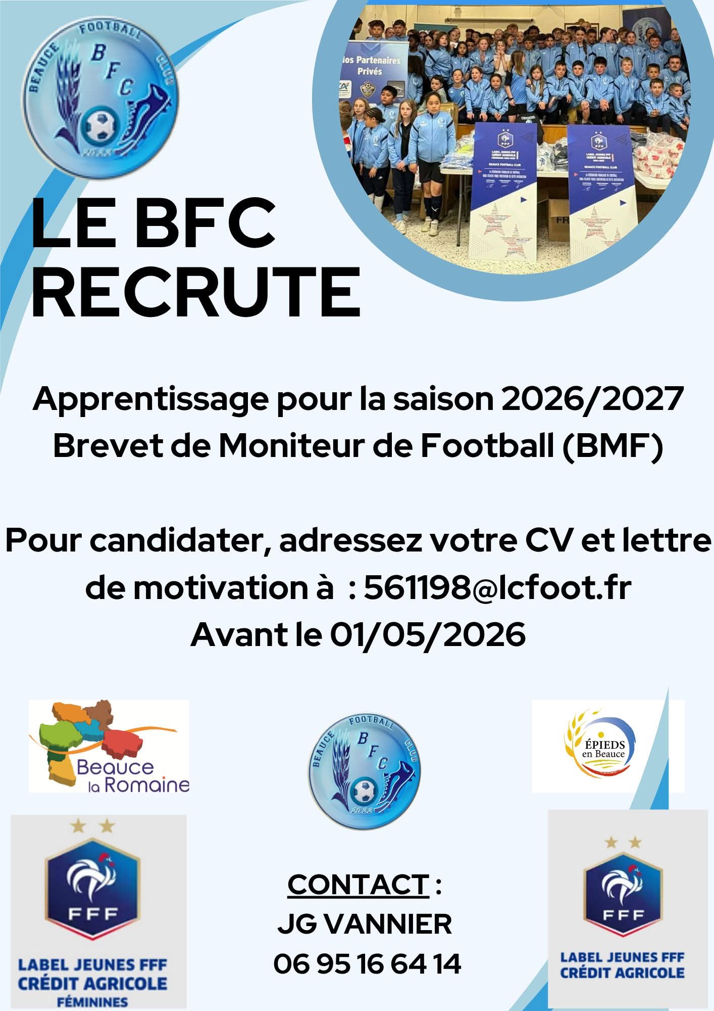Le club de Beauce FC recrute pour saison 2026 – 2027 :