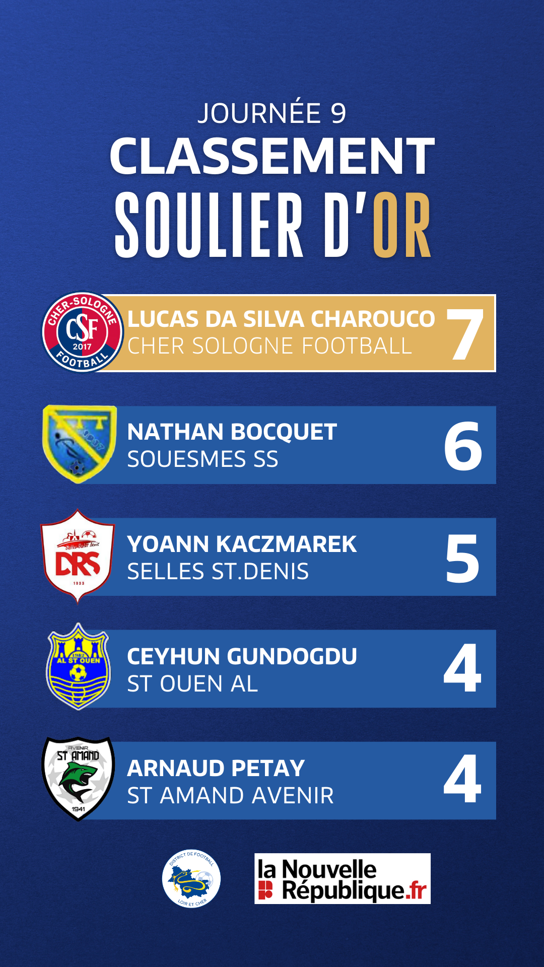 Le District de Loir-et-Cher de Football, en partenariat avec La Nouvelle République, est ravi de vous présenter le Top 5 à l’issue de cette 9ème journée de Départemental 1 !